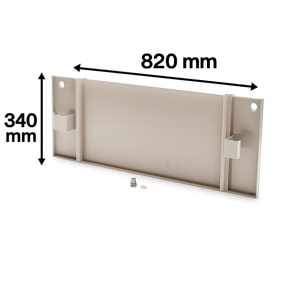 Taca wykonana jest z trwałego tworzywa PVC odpornego na wilgoć, korozję oraz odkształcenia termiczne. Jej konstrukcja umożliwia szybki montaż – w zestawie znajdują się elementy montażowe oraz króciec odpływowy, który pozwala łatwo podłączyć wężyk skroplin.